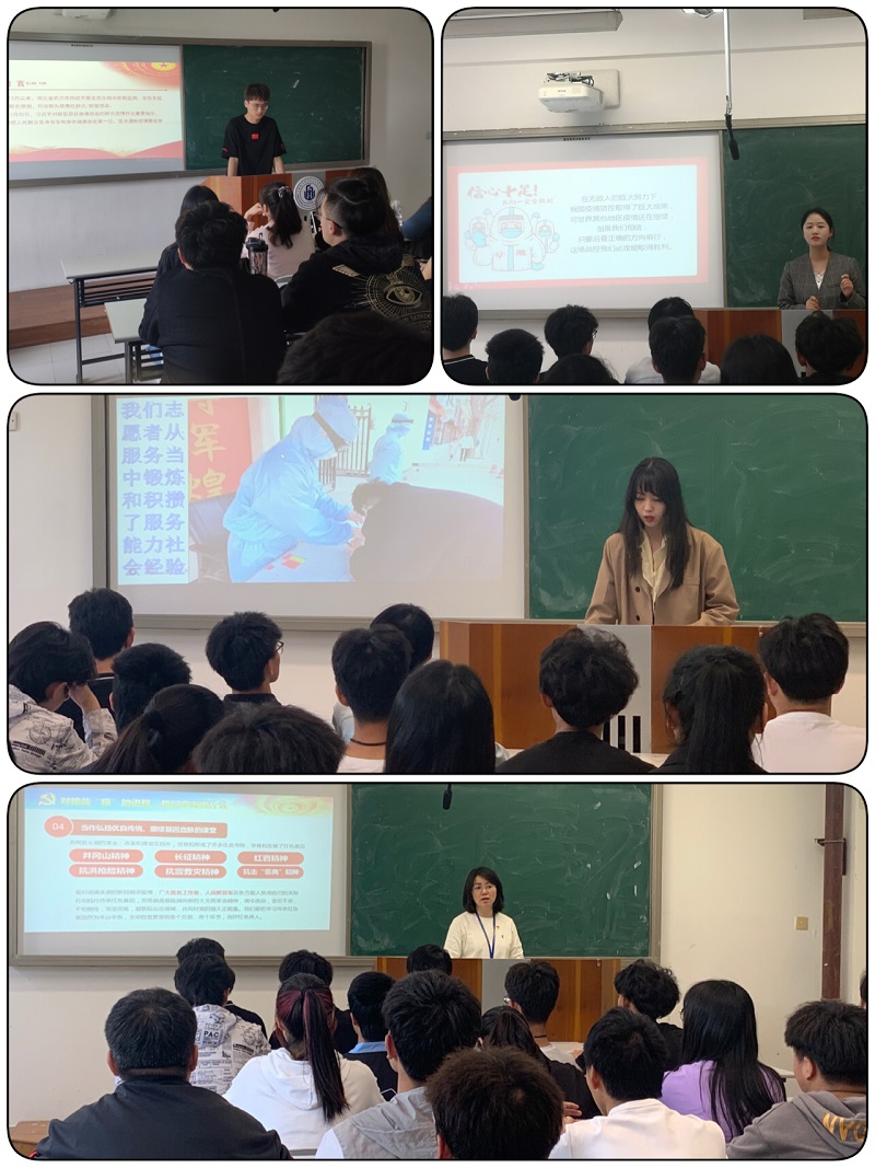 本次宣讲团以“重温党史、感悟精神、凝聚力量、践行使命”为主线,以李莉、马光军、蔡光跃、包晓蕾为代表的党员教师结合专业课程做好学生课程思政党史学习教育,带领学生重温党史峥嵘岁月,感悟革命英雄精神力量,以史鉴今,展现新时代中国奋力前进的源源动力。以徐路德、许荃、吴海燕、李婷婷老师为代表的辅导员老师结合学生日常管理及抗疫经历,为学生解读中国特色社会主义制度的优越性,展示面对疫情临危不惧的中国速度、中国力度与中国温度。以闵凯捷、刘力猛、姚张园、薛嘉妮为代表的同学宣讲团通过结合伟人精神力量,党史革命精神及自身的抗疫志愿经历,学史力行,践行新时代青年大学生的责任与担当。