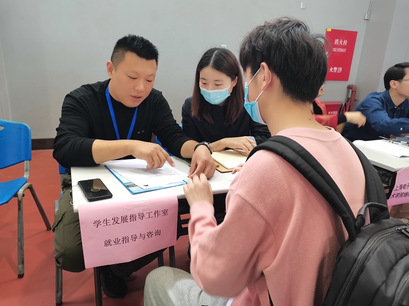 双选会现场秩序井然,人头攒动,学生积极向招聘企业投递简历,主动与招聘企业交谈,了解用人单位的需求,洽谈顶岗实践工作具体事宜。截止下午三点,学生投递简历累计达4500余份。本次双选会,现场专门设置了职业指导与咨询展位,学校学生发展指导工作室的指导教师为学生提供一对一的职业指导与咨询服务,bilibili线上直播就业,实时进行双选会实况播报,帮助下一届学生提前“热身”,感知职场环境。