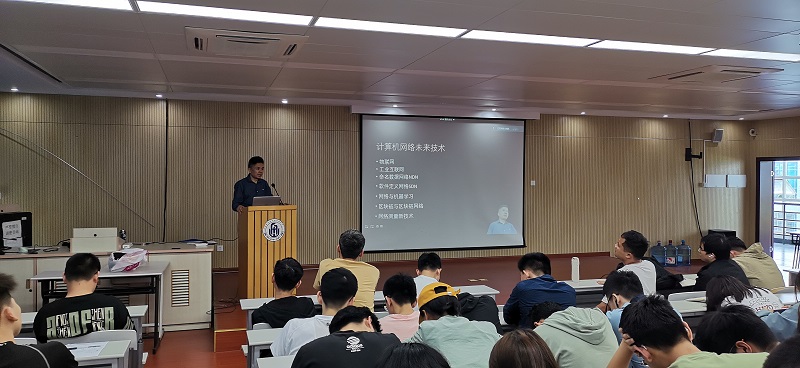 单老师从“新技术发展助力企业、个人成长”、“网络技术公司的企业文化”“ 信息行业用人通用标准”“ 网络技术发展新趋势”“ 网络工程师案例”等五个方面,聚焦物联网、工业互联网、命名数据网络、软件定义网络、网络与机器学习、区块链与区块链网络、网络测量新技术等多个维度,分析了网络技术对学生的职业素质和对终身学习的要求等,对学生职业规划和发展,做了具有前瞻性的思想动员和行为指导。