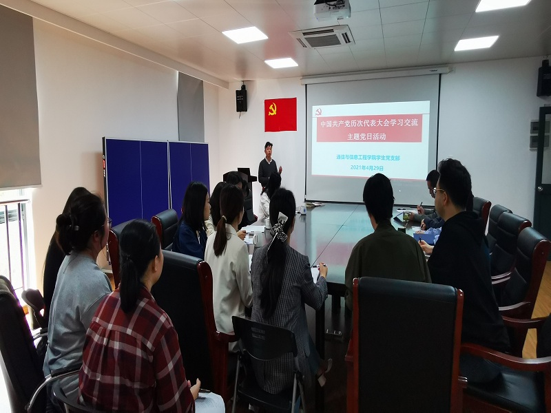 为加强党史学习教育,推动广大党员知史爱党、知史爱国,2021年4月29日下午,我院学生党支部组织党员在J313会议室开展了中国共产党历次代表大会学习交流主题党日活动。