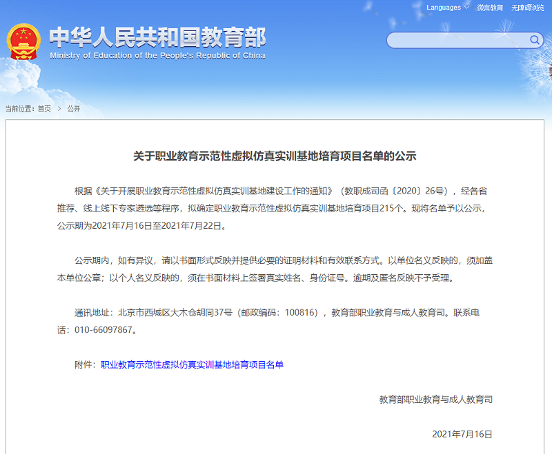 近日,国家教育部公示了国家级职业教育示范性虚拟仿真实训基地培育项目名单,我院“5G移动通信职业教育示范性虚拟仿真实训基地”名列其中。