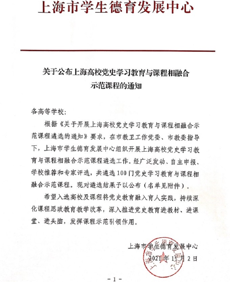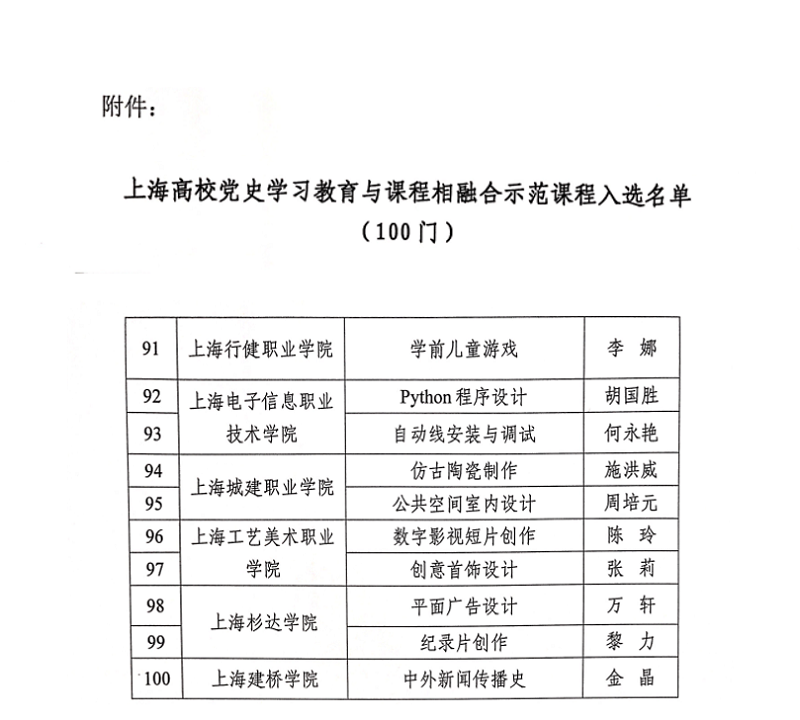 日前,上海市学生德育发展中心印发《关于开展上海高校党史学习教育与课程相融合示范课程遴选的通知》,我院院长胡国胜申报的《Python程序设计》被评为党史学习教育与课程相融合示范课程。