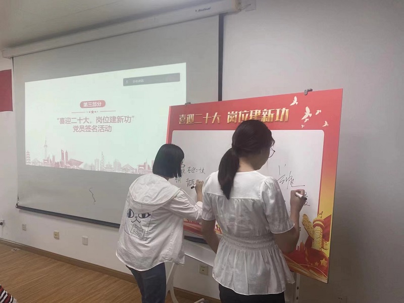 随后,支部全体党员作“喜迎二十大,岗位建新功”承诺签名。