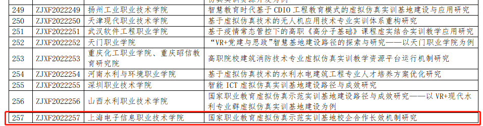 近日,教育部科技发展中心公布了2022年度《虚拟仿真技术在职业教育教学中的创新应用》专项课题立项名单,我院院长胡国胜教授主持申报的《国家职业教育虚拟仿真实训基地校企合作长效机制研究》(ZJXF2022257)获批立项。