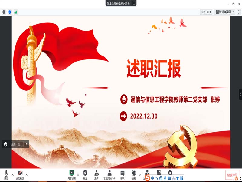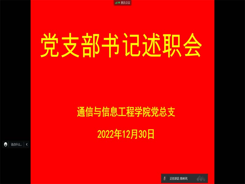 为认真学习贯彻党的二十大精神和市第十二次党代会精神,持续推动我院党支部书记履职尽责抓党建,落实管党治党政治责任,根据学校党委的工作部署,12月30日我院党总支线上开展2022年度党支部书记述职评议。学校党委组织部副部长吴淑芳老师列席会议、学院党总支委员、各支部委员参会。