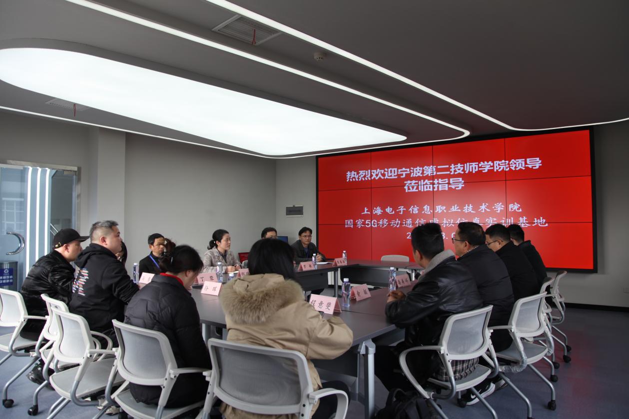 2023年3月3日,宁波第二技师学院副院长潘美祥、数字化教学改革副组长梁超一行来我院国家5G移动通信示范性虚拟仿真实训基地考察交流。我院副院长俞玉莲、参与5G实训基地建设的简春兵等数位老师接待。