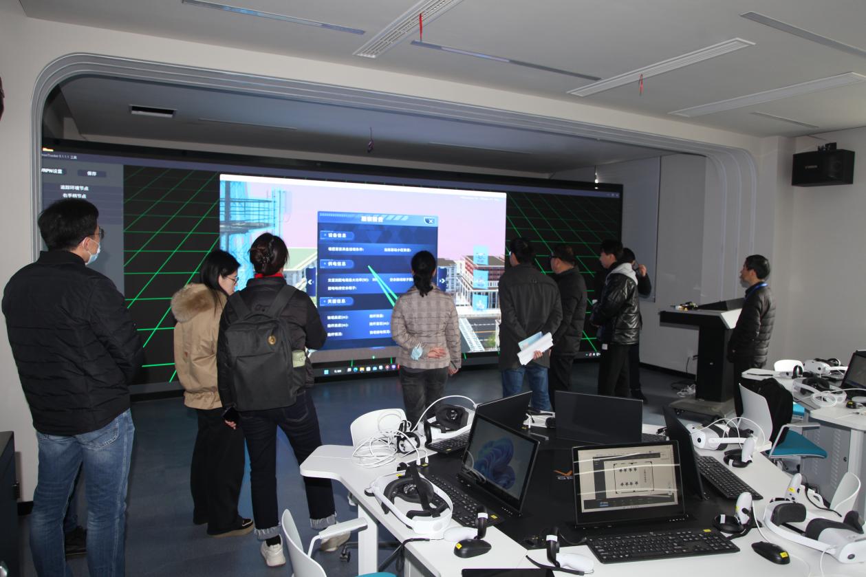 首先,副院长俞玉莲对潘美祥副院长一行的到来表示欢迎。潘美祥副院长一行先后参观了我院5G虚拟仿真实训基地的5个中心——专业虚拟仿真实训中心、公共虚拟仿真实训中心、虚拟仿真体验中心、虚实结合专业实训中心、虚拟仿真研创中心(部分中心还在建设中)。简春兵老师在专业虚拟仿真实训中心对基地建设特色进行了详细介绍,并带领潘美祥一行体验了基地建设成效,包括点对多点主动式立体化集中式教学、基于虚拟现实的沉浸式实训和场景化”教-学-练-测“贯通式一体机实训等项目。