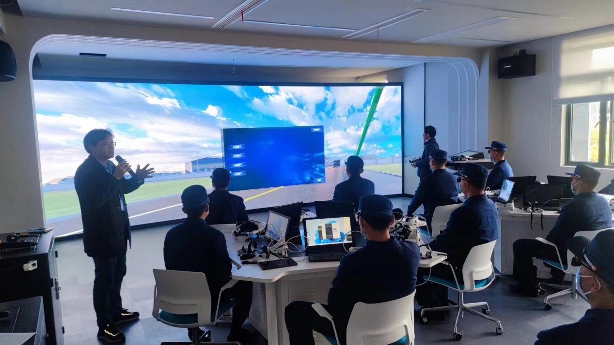 我院简春兵、罗敏等教师向消防学员介绍了基地实训中心的情况。重点介绍了实训中心为解决“三高三难”问题建设的沉浸式LED大屏、桌面式操作一体机,和VR桌面系统。简春兵老师现场演示了沉浸式LED大屏的5G站点建设课程,让学员体验了虚拟仿真实训的授课方式。在罗敏老师的指导下,消防学员们逐一戴上VR虚拟现实眼镜,拿起手柄,沉浸式体验5G站点,感受魔幻现实的魅力。