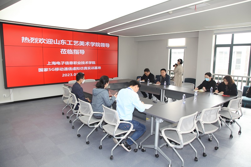 2023年3月8日,山东工艺美术学院艺术与设计实践教学中心主任高振堂一行3人来我院国家级5G移动通信示范性虚拟仿真实训基地调研,我院教学副院长俞玉莲等参与实训基地建设的老师负责接待。