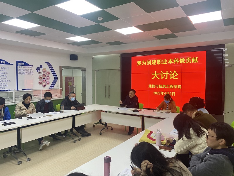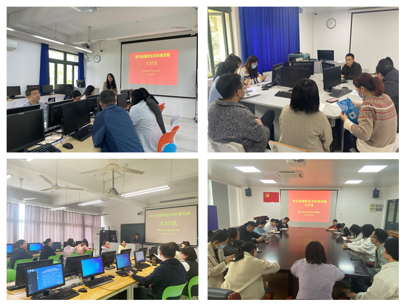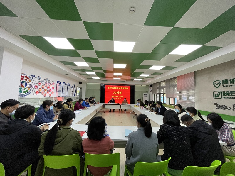 为进一步引导广大教师以实际行动积极投身学校职业本科创建工作,4月3日,学院在J112开展“我为创建职业本科做贡献”大讨论。活动由学院党总支书记陈林河主持,学校教师工作部胡燕受邀参加,学院全体教师参加活动。