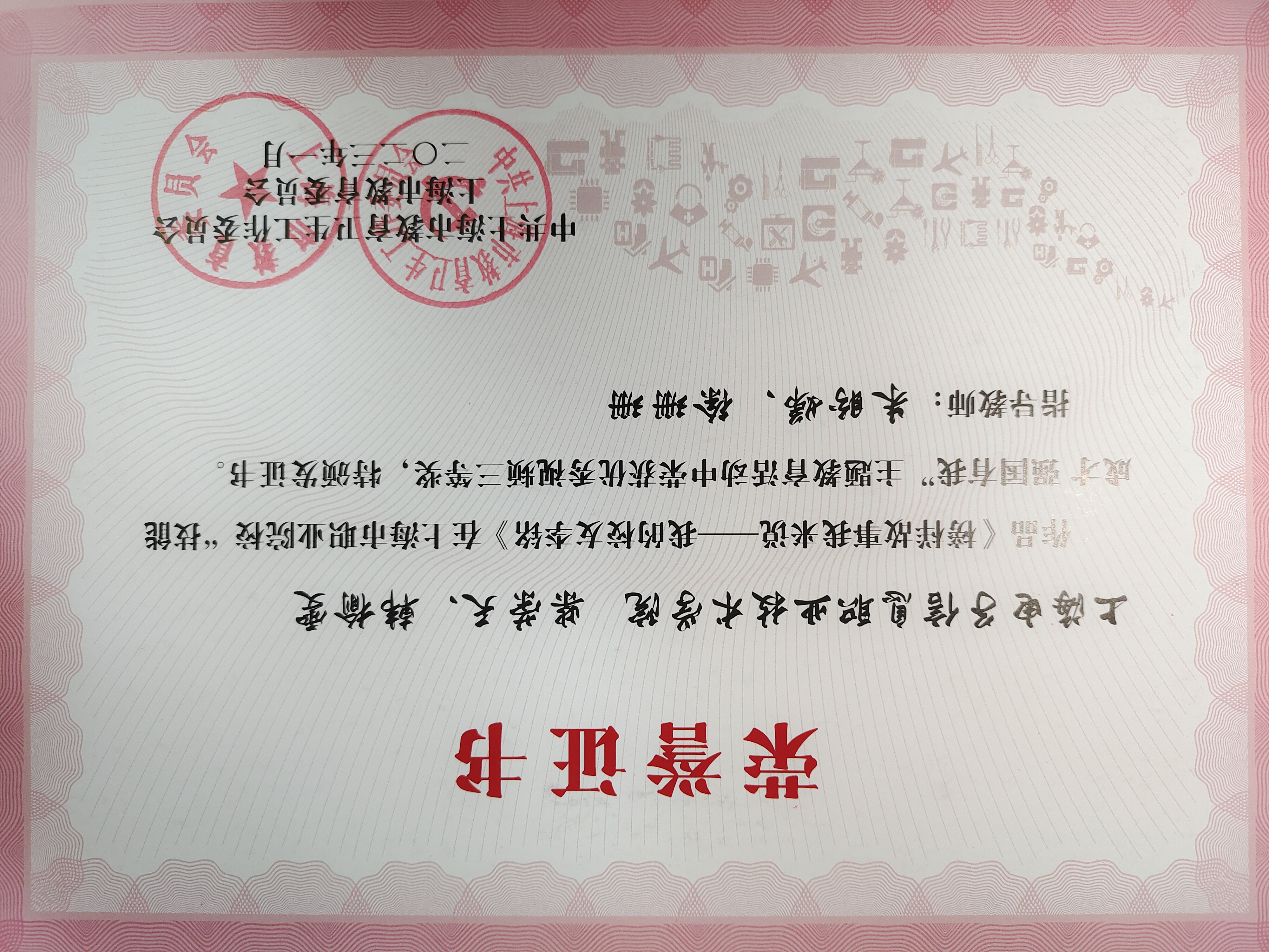 2023年1月,我院学生肖嘉欣的作品《以匠心铸经典,用“艾”成就未来》,柴荣天、韩榆雯的作品《榜样故事我来说一-我的校友李铭》分别在上海市职业院校“技能成才 强国有我”主题教育活动中荣获优秀视频二、三等奖。(供稿:朱盼娣)