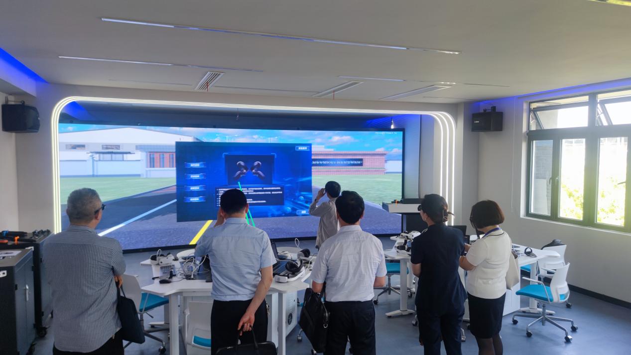 实训老师介绍5G移动通信实训基地建设情况,包括5个中心和1个平台;为解决“三高三难”问题,实训中心建设了沉浸式LED大屏、桌面式操作一体机,和VR桌面系统,并向领导们讲解了5G站点勘察和安装等VR课程情况。现场演示了沉浸式LED大屏的智慧园区5G勘测实训课程;用VR桌面系统演示了5G宏站安装实训课程,和桌面一体机的5G技术功能展示;与会来宾身临其境体验了5G虚拟仿真课程,取得了良好的参观效果。(供稿 邵晓峰)
