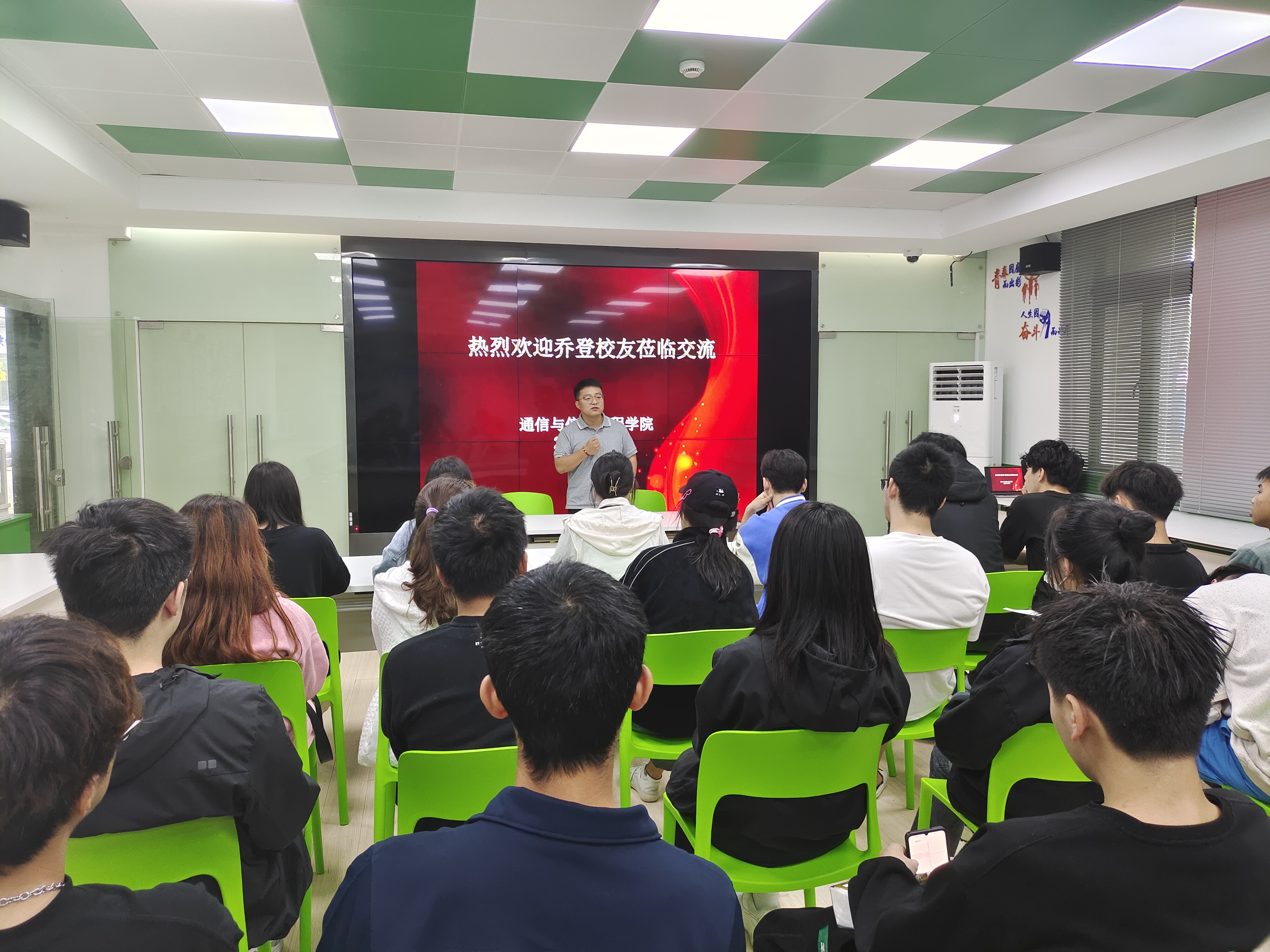 会上,乔登校友对于母校的培养以及老师们的辛勤付出表示感谢,并向学弟学妹们分享了自己宝贵的人生经历与工作经验,建议学弟学妹们要珍惜在校的时光,培养独立生活、独立学习、独立思考、沟通能力以及创造能力。同时,要在大学期间找准自己的兴趣点及发展方向,扬长避短,不断突破自我。