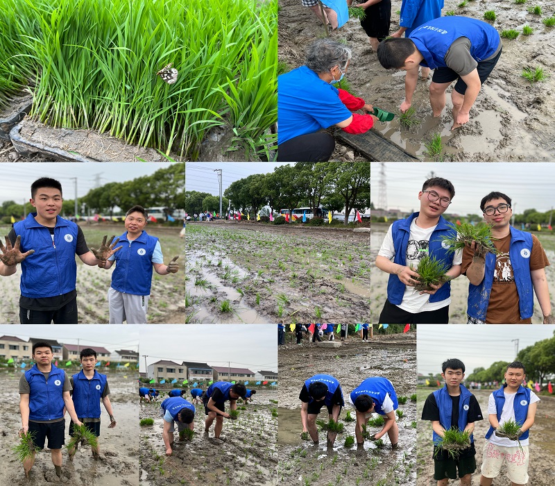 在南渡村“千亩良田”教育实践基地,陈林河书记与南渡村党总支书记、村委会主任潘志丹共同为“大学生劳动教育实践基地”揭牌。学生党支部党员教师王逃西带领入党积极分子一同参加了南渡村第四届农民运动会插秧比赛,大家在劳动中沉浸式体验了农民劳作的辛苦,明白了“绝知此事要躬行”的道理。