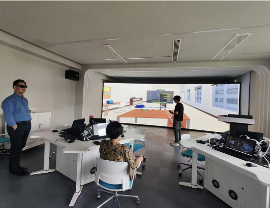 程堂柏老师先介绍了我院实训基地的5个中心和1个平台的当前建设情况,和实训基地将来的发展和规划,并为对方院校将来VR资源建设提出了一些专业建议。
