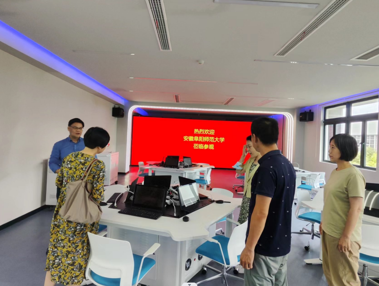7月4日下午,阜阳师范大学信息中心领导和信息中心骨干教师来我院5G移动通信职业教育国家示范性虚拟仿真实训基地考察交流。我院副院长俞玉莲及参与实训基地建设的程堂柏等老师接待。