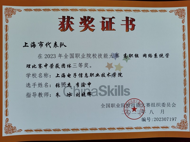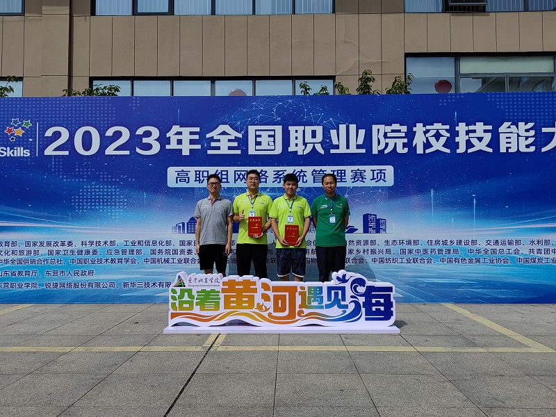 8月21日,2023年全国职业院校技能大赛网络系统管理赛项在山东省东营职业学院举办。由我院学生张赟杰、李渝申组成的参赛队在朱冰、刘晓辉老师的指导下,参与了本次赛事的角逐,与来自全国72所高职院校的参赛队同场竞技。经过一天紧张激烈的竞技,最终以较扎实的专业技能和良好的心理素质,荣获三等奖。