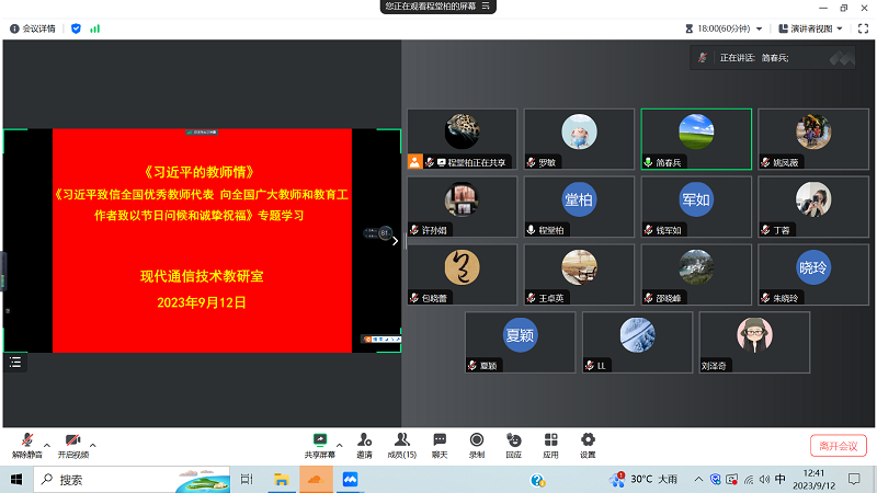 911日至13日,我院以教研室为单位线上组织全体教师观看专题片《习近平的教师情》,学习习近平总书记致全国优秀教师代表的信。