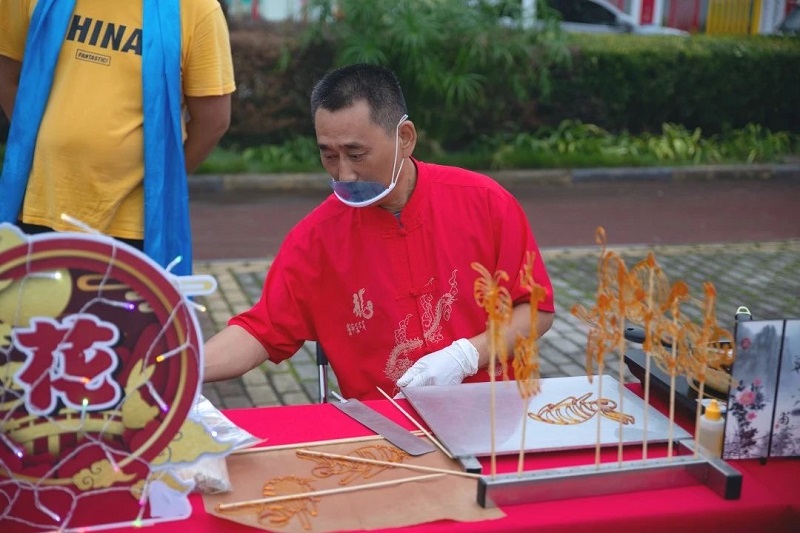活动中,我院学生阿卜力米提·阿卜杜拉同学为南渡村村民表演了精彩的新疆舞蹈——《赛乃姆》,那欢快的旋律,动感的节奏,曼妙的舞姿,生动的表情,赢得大家阵阵掌声。活动现场,南渡村村委会邀请我院师生参观并体验了南渡村“糖画技艺”“巧手月饼”“藤编灯笼”等民俗活动。