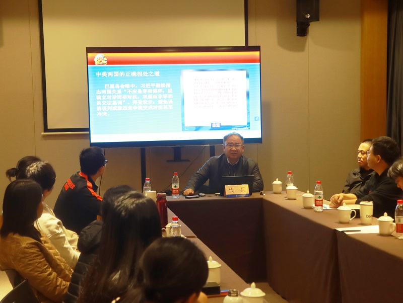 授课中,代兵老师以《当前国际形势与周边安全问题研究》为题,围绕当前我国面临的国际国内形势,从中美关系的历史沿革及发展规律、美国对台湾问题的干涉与介入、“台独”运动的发展与危害等方面,通过典型案例和精辟分析,用大量详实的数据、鲜活生动的案例、严谨精炼的语言,图文并茂对我国周边安全形势、中美关系等热点问题作了全面系统的剖析和解读。
