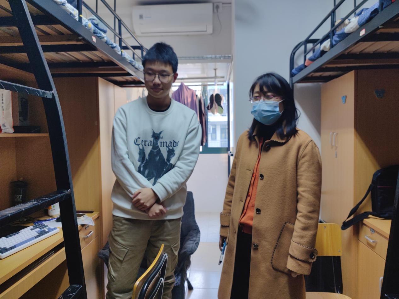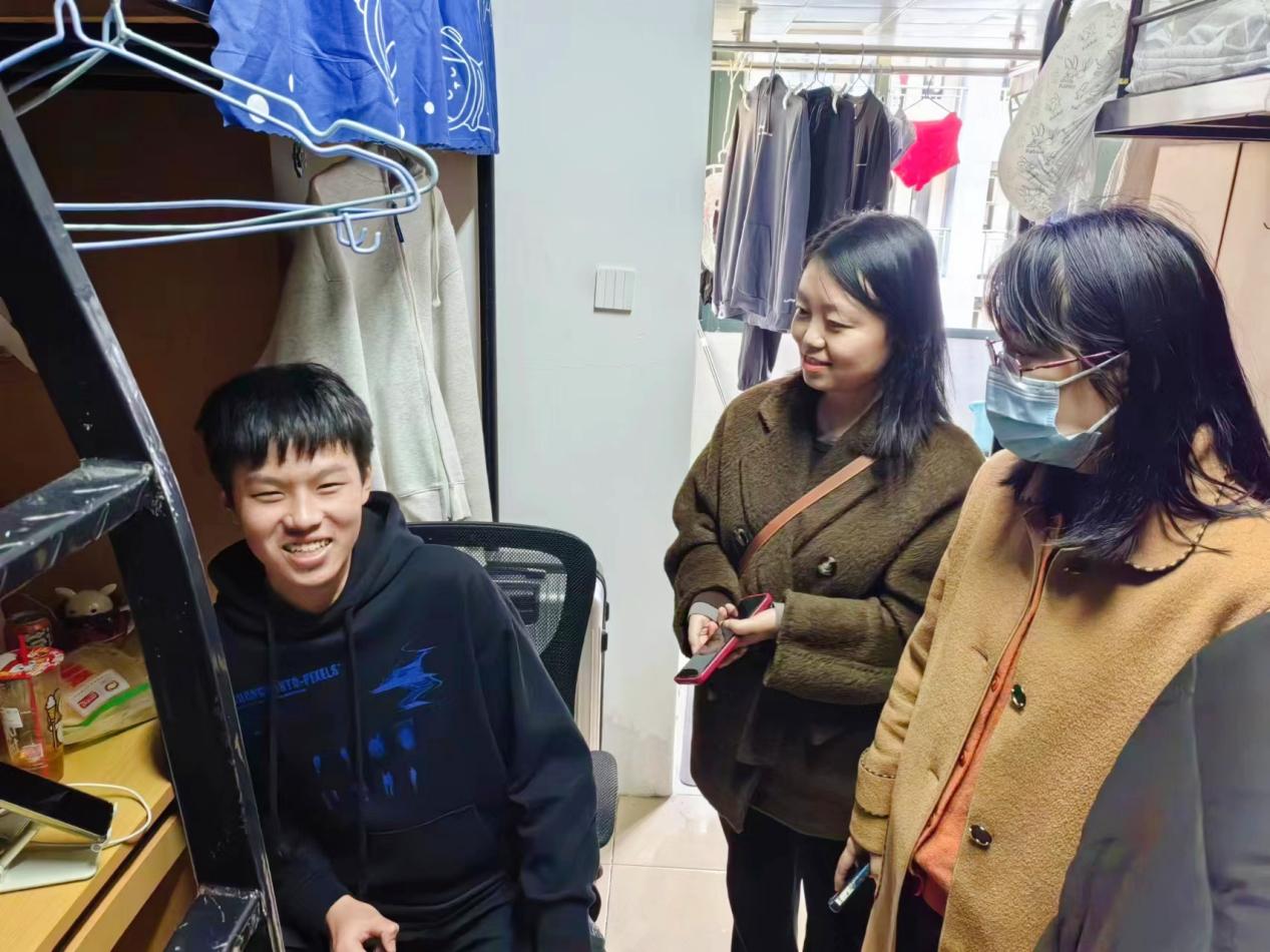 在宿舍检查过程中,老师们亲切询问了同学们的学习和生活情况,叮嘱大家临近期末考试,一定要认真复习功课,不要熬夜,保持宿舍卫生,养成良好的生活习惯。同时,老师们重点检查了同学们是否有使用违章电器、遮挡烟感报警器以及私拉电线等行为,向同学们耐心讲解了宿舍安全的重要性。对于同学们提出的问题,老师们认真记录,后续将及时进行反馈和处理。