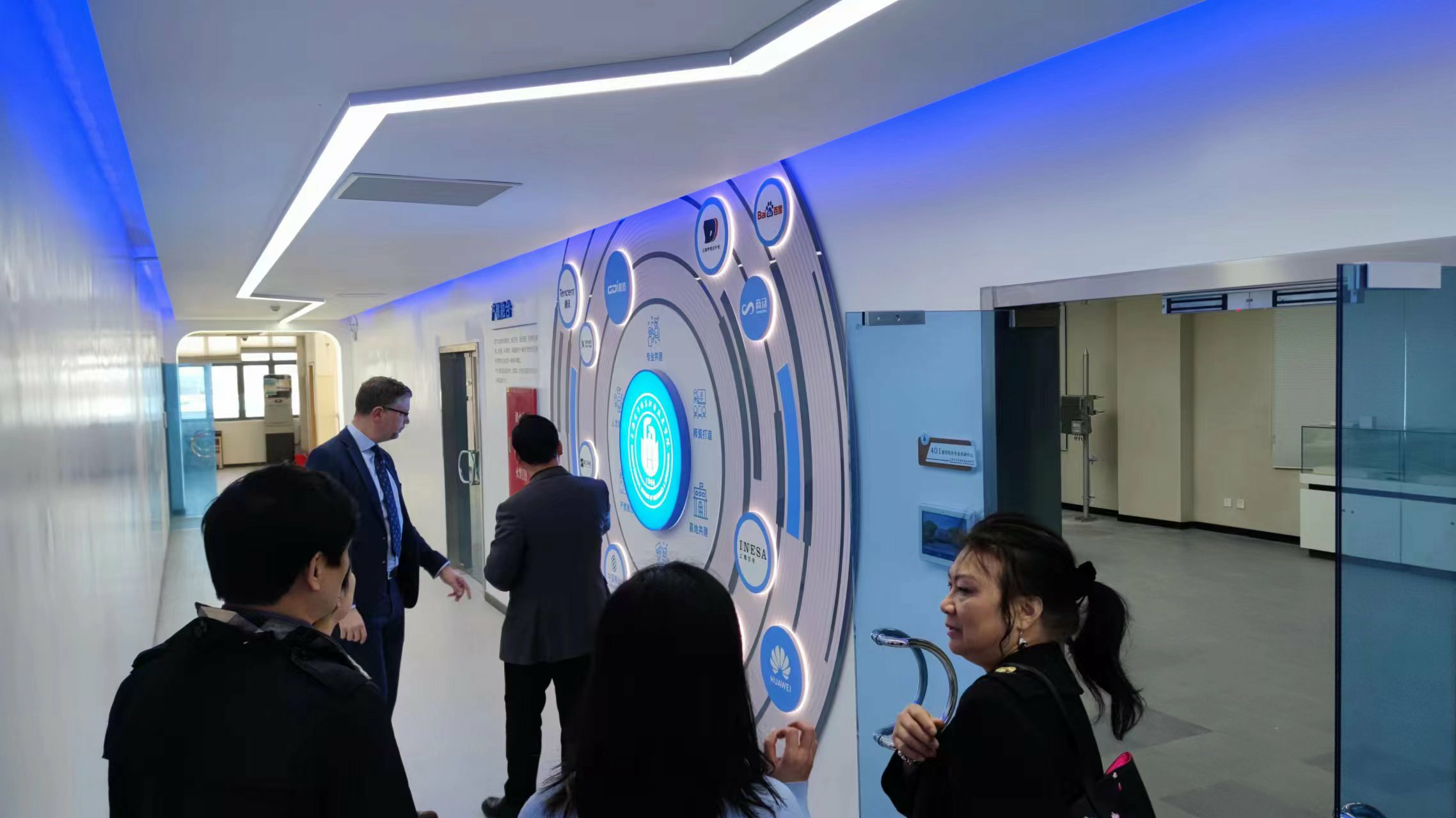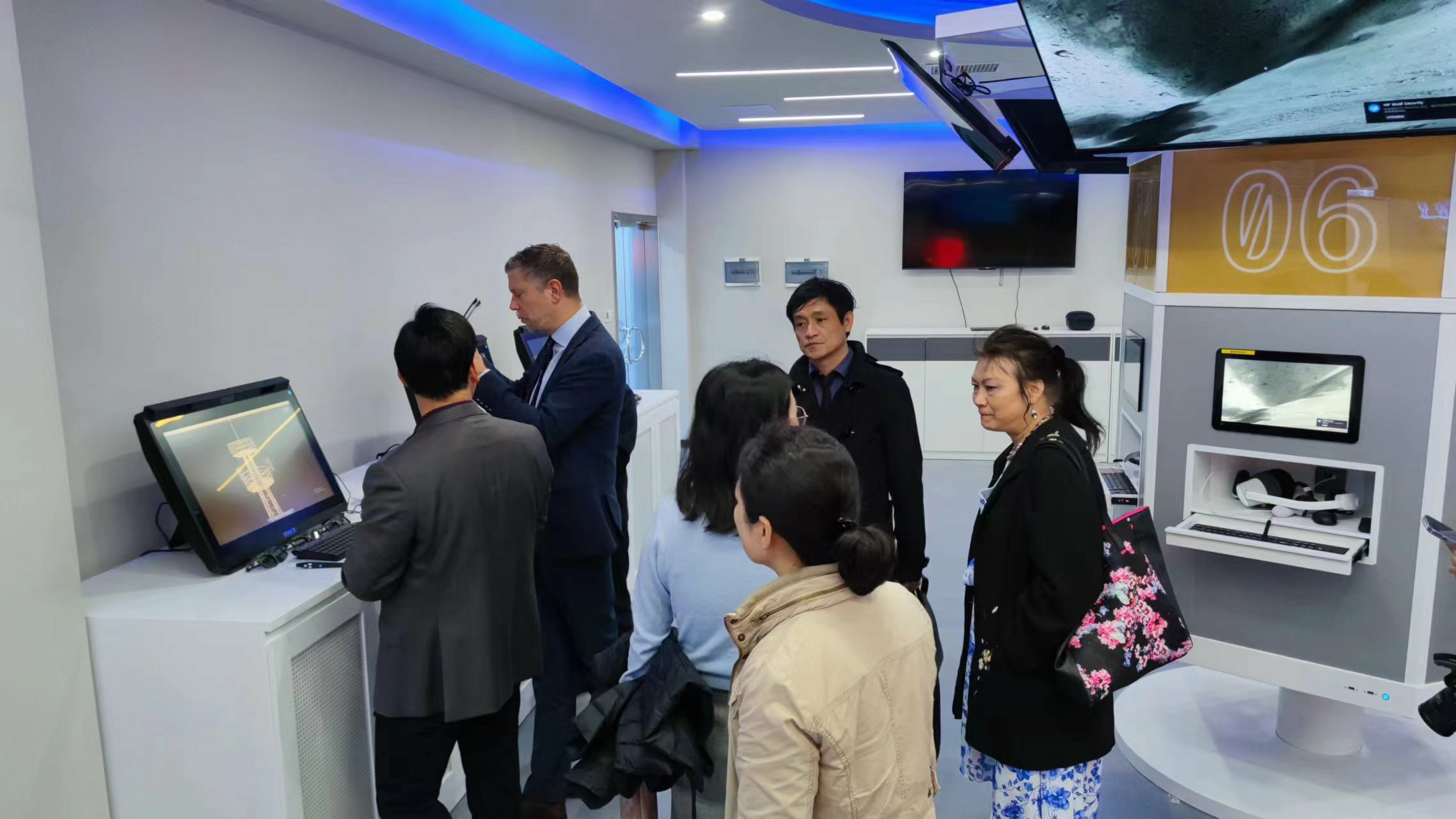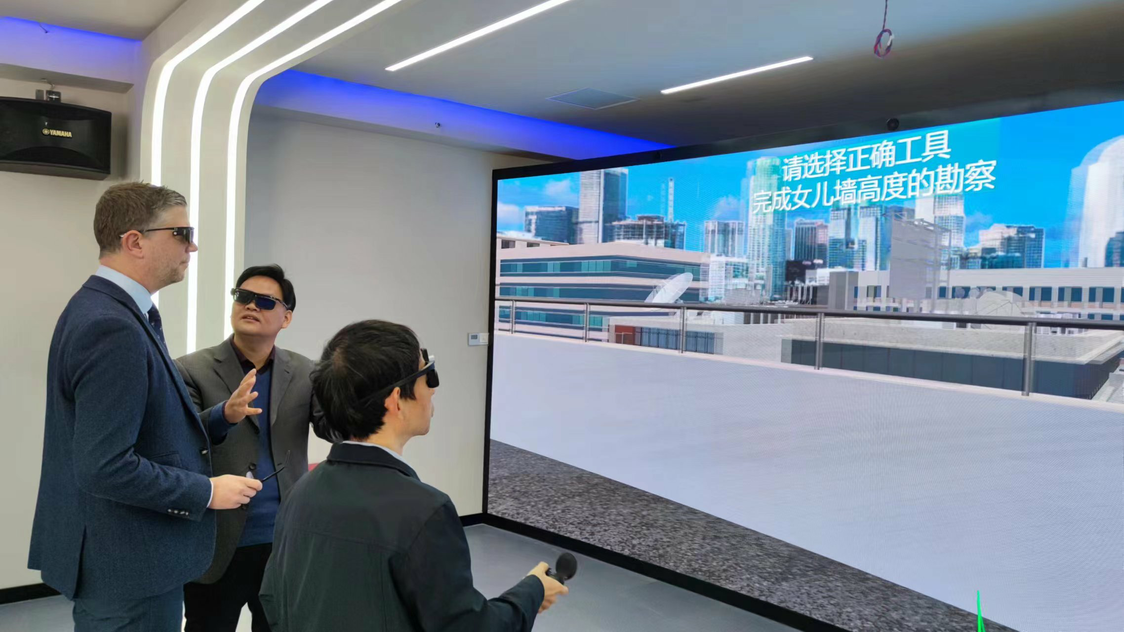 在参观专业虚拟仿真中心、体验中心和虚实结合3大中心过程中,程堂柏老师详细介绍基于XR技术的数字化创新教学模式,虚实结合教学等内容;交流过程中双方就基于XR体验、新型的教学模式等详细问题进行讨论。