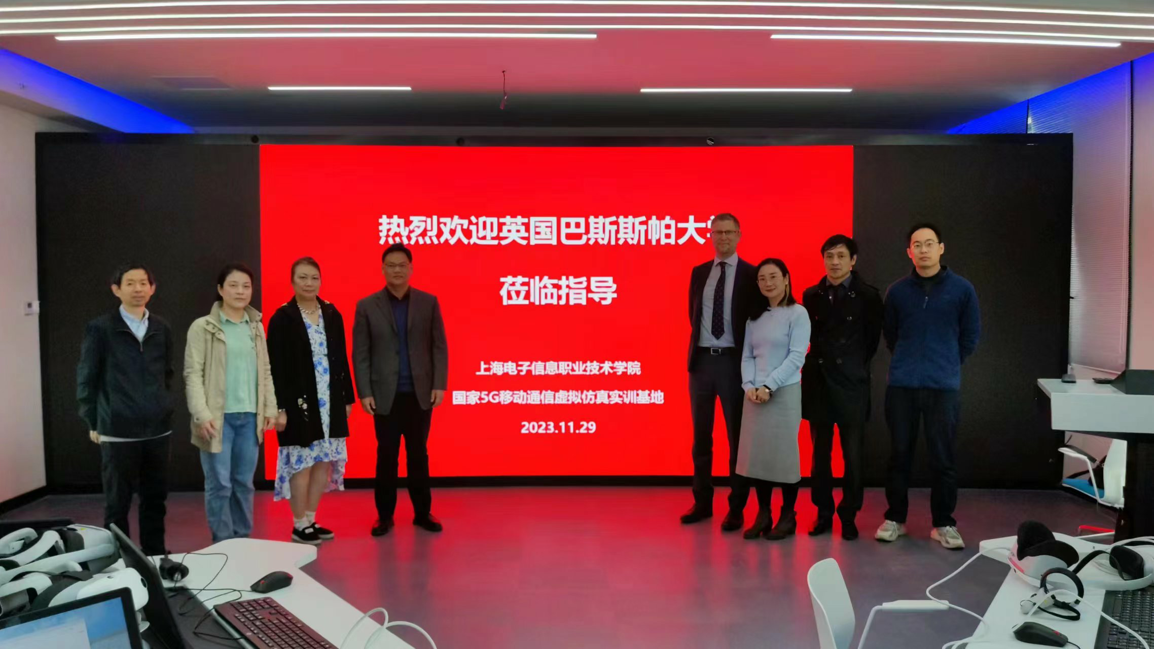 11月29日上午,英国巴斯斯巴大学招生与市场总监、国际招生与合作负责人等来我院国家5G移动通信虚拟仿真实训基地参观交流。我院副院长俞玉莲、现代通信技术专业程堂柏和邵晓峰老师负责接待。