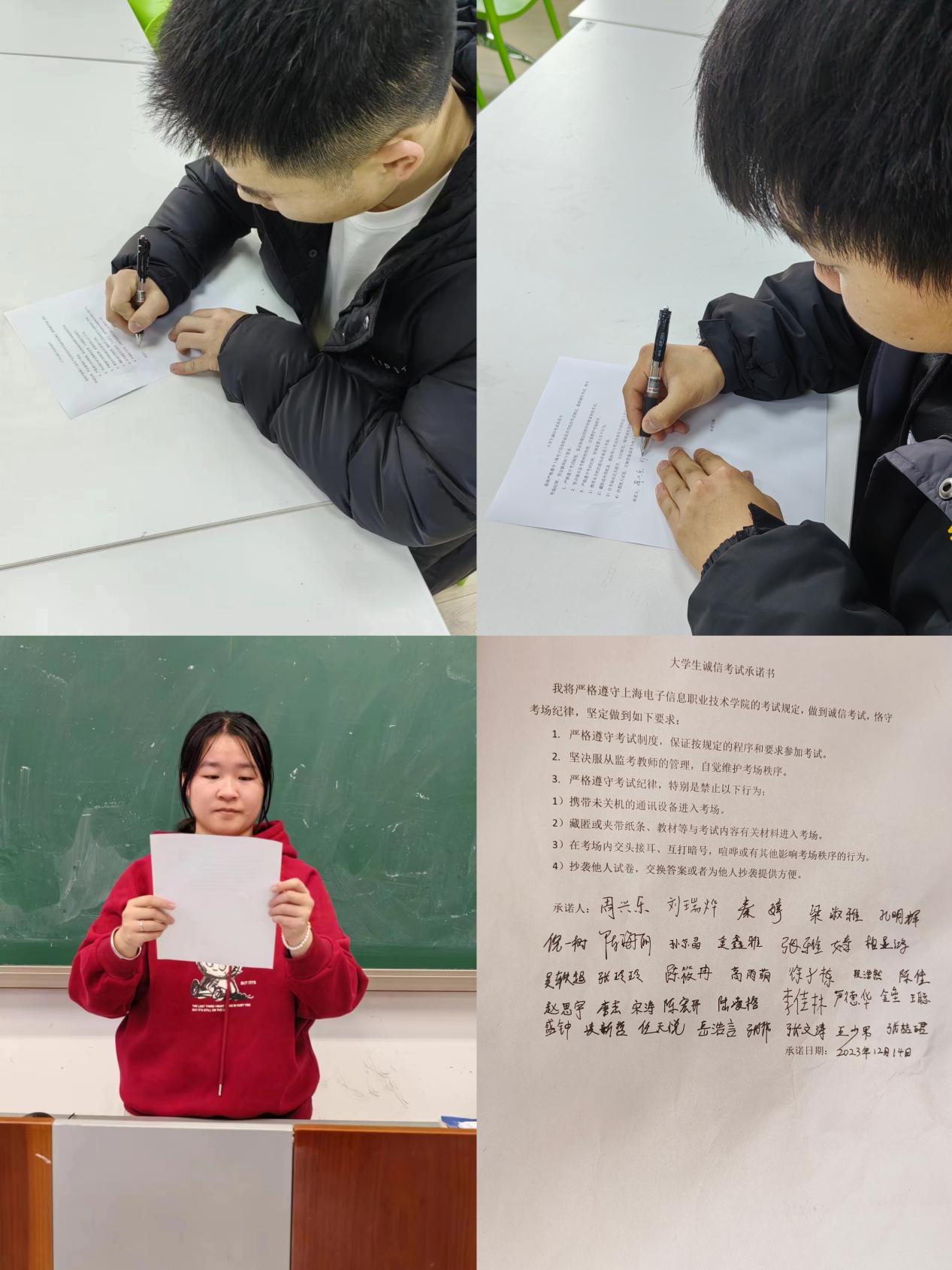 各辅导员通过主题班会宣讲、签署《大学生诚信考试承诺书》等形式宣传诚信考试的重要性,倡导学生自觉遵守考试纪律和考场规则,强调不得在考试过程中有抄袭、弄虚作假等考试不诚信行为。