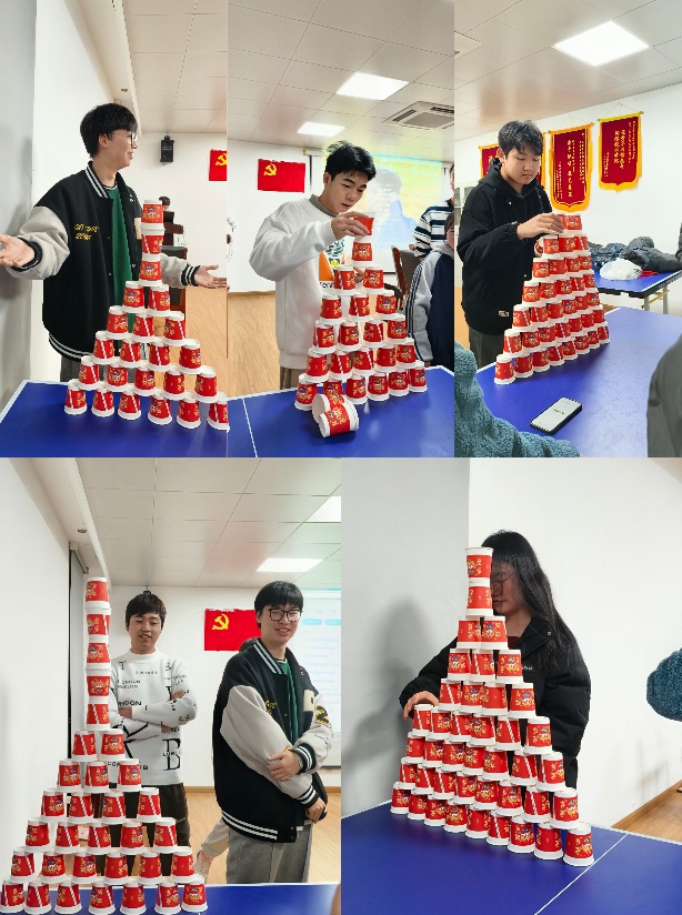 晚会在叠杯子游戏的欢呼中拉开序幕,本次游戏以沈之鑫同学为最后的赢家。