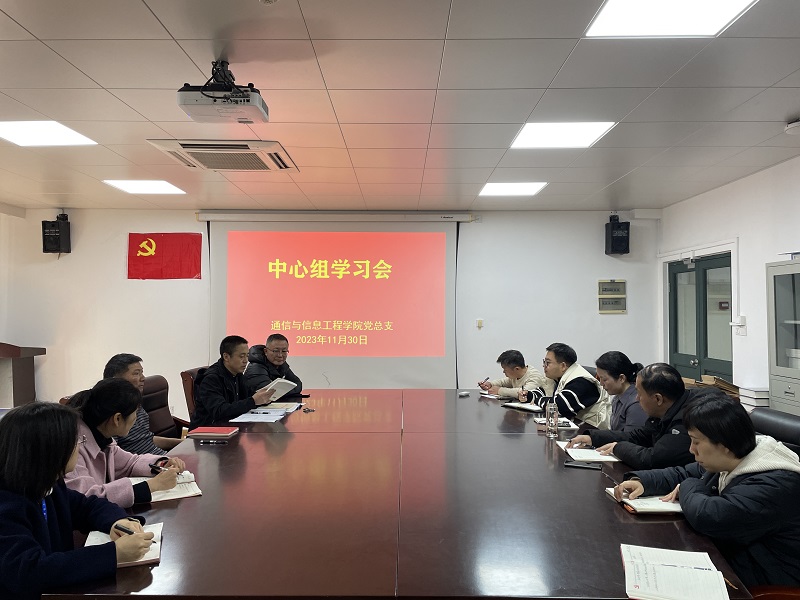 11月30日下午,我院党总支在J313会议室召开中心组专题学习会,集中学习贯彻习近平文化思想。党总支书记陈林河主持会议并领学,中心组全体人员参会。