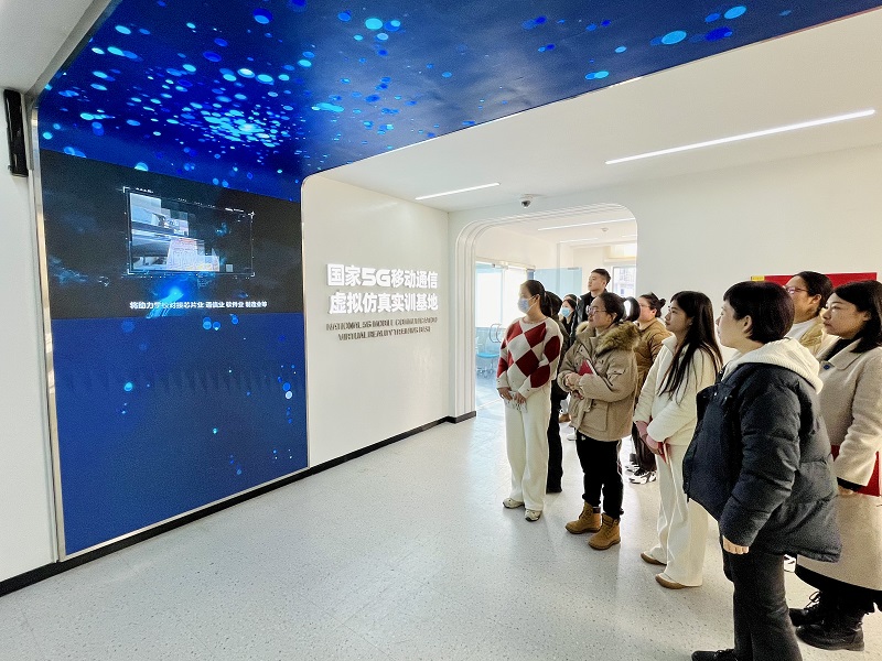 活动中,学生党支部书记张思矛首先带领大家共同学习了习近平总书记考察上海讲话精神和深入推进长三角一体化发展座谈会精神;随后,教师第二党支部书记张婷分享了“全国党建工作样板支部”创建的经验,张老师以《“一二三”工作法 夯实党建之基》为题向大家介绍了教师第二党支部建设的具体举措,并与参会党员就支部建设和发展等方面进行深入交流;最后,全体党员同志在教师第二党支部党员沈皎佶老师带领下共同参观5G移动通信虚拟仿真实训基地,了解5G虚拟仿真课程,取得了良好效果。