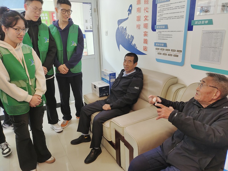 南渡村党总支书记潘志丹、副书记沈兰带领我院师生先后参观了南渡村村史馆、粮食种植专业合作社,向大家介绍了南渡村的历史脉络和乡村振兴工作的开展情况;在退役军人服务站,师生们探访慰问抗美援朝老兵,表达对老兵的敬意和感激,传承革命精神。