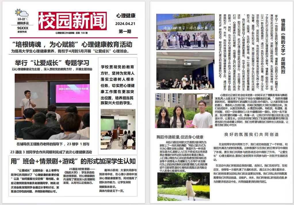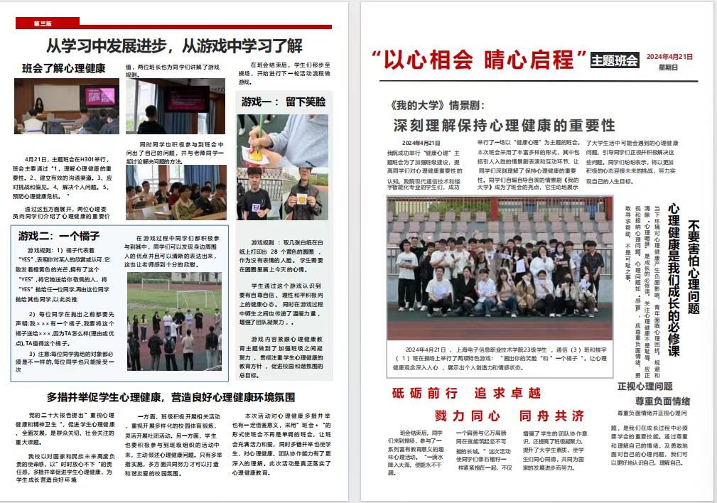 为扩大此次心理主题班会的影响力,以新闻报道+报纸图文的形式进行展示,具有新创意、新活力和新高度!