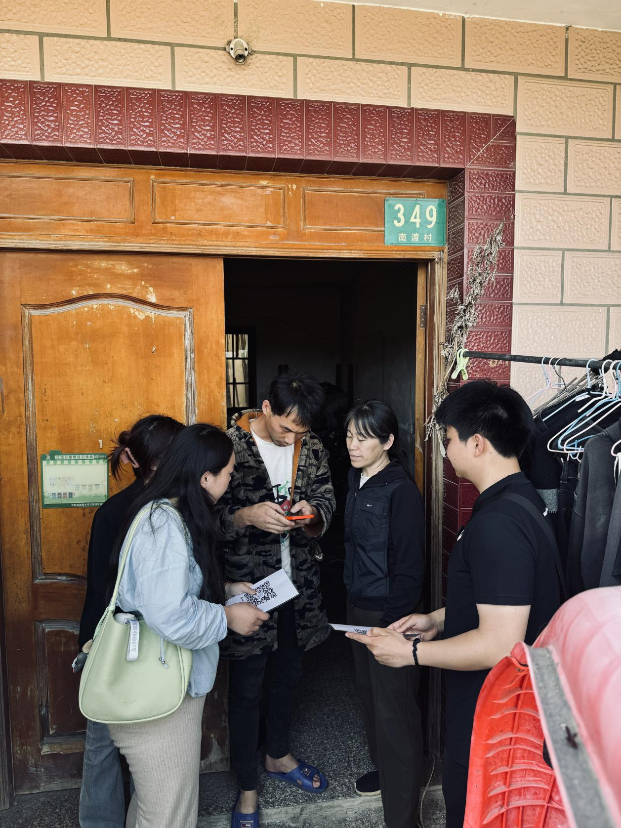 随后,学生志愿者们在南渡村工作人员及村民的协助下,积极投身于项目推广工作。他们以专业的素养和认真的态度,向村民介绍和推广“博弈南渡”小程序,展现了青年学生的社会责任感和担当。