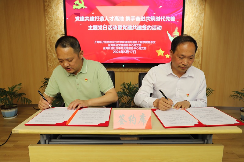 为深入学习贯彻习近平总书记考察上海重要讲话精神,努力构建“资源共享、人才共育、党建共融、社区共治”的校地区域化党建共建新模式,5月17日下午,学院党总支副书记江龙、副院长华文立、副院长李元元带领部分党员教师赴奉贤区金海街道开展党建共建活动,并与金海街道党群服务中心党支部、社区事务受理服务中心党支部分别签署党建共建合作协议。