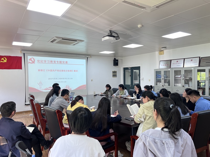 为深入学习贯彻《中国共产党纪律处分条例》,进一步加强党的纪律建设,切实增强党员的纪律意识和规矩意识,扎实推进党纪学习教育走深走实,5月16日上午,学生党支部书记张思矛为支部全体党员讲授党纪学习教育专题党课。