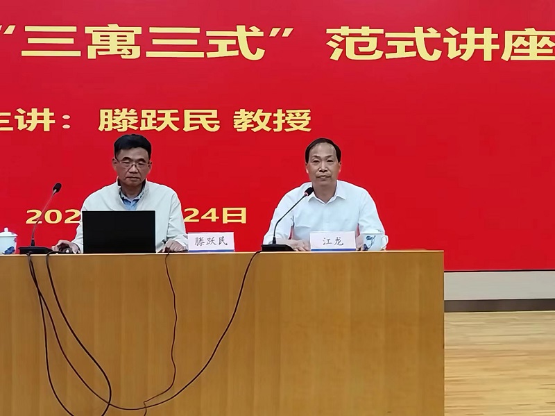 全面落实立德树人根本任务,增强青年教师教书育人职责,营造“课程门门有思政,教师人人讲育人”良好氛围,5月24日,由学校工会和教师工作部主办我院承办的课程思政“三寓三式”范式讲座在C108报告厅顺利开展。讲座由我院党总支副书记江龙主持,特邀知名教授滕跃民为我校教师作报告。