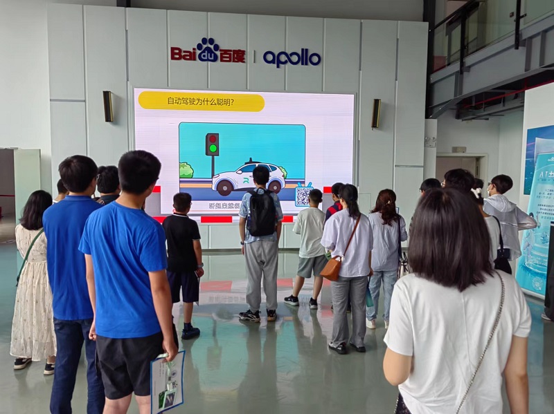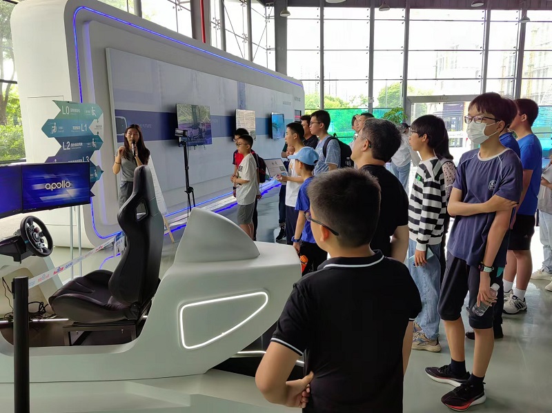 在“基于5G智能网联技术的自动驾驶体验”项目中,来自百度公司的企业讲师带领学生和家长参观了百度Apollo自动驾驶技术展厅,先后介绍了自动驾驶技术的发展历史、自动驾驶技术的基本原理和分级制度、国内自动驾驶汽车的代表性产品、对于5G云代驾驾舱的未来新职业畅想等;随后学生和家长乘坐无人驾驶汽车驶入公共道路,实地体验了L4级自动驾驶技术的应用。通过该体验项目,学生对我国在人工智能技术领域的最新技术成果产生了浓厚兴趣,全面感受了人工智能技术对各行各业的巨大应用价值,对未来在人工智能领域诞生的新岗位有了深入了解。