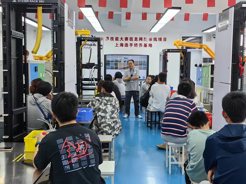 在“面向6G现场工程师职业体验”项目中,学生和家长首先参观了我校5G虚拟仿真国家级实训基地,在3D大屏中共同体验了5G通信站点勘测和设备安装、面向未来的5G+工业互联网工作项目等;佩戴VR头盔实现多人协同合作,深入体验面向未来的5G+工业互联网新型工程师工作项目。随后,学生和家长参观了信息网络布线世赛选手培养基地,深入了解通信网络工程师进行线缆布设和端接的职业技能要求和世赛信息网络布线赛项的竞赛内容。职业体验结束后,部分学生家长围绕未来孩子职业发展与相关教师进行讨论交流。该体验项目活动,全面展示了我校在5G通信技术领域的职业教育成果,增强了我校职业教育社会影响力和吸引力,使学生通过感受职业文化,培养了职业兴趣和职业意识。