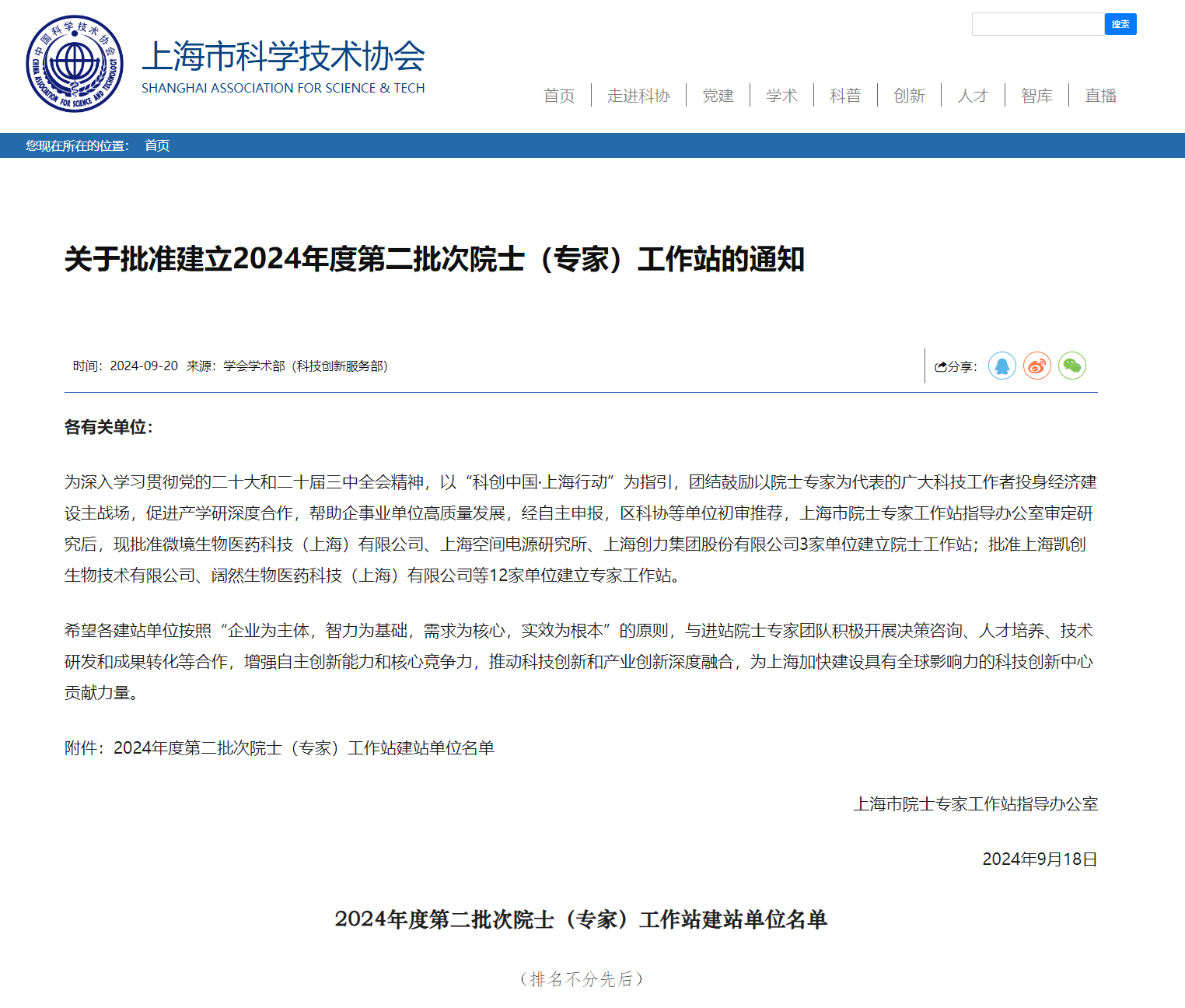 近日,上海市院士专家工作站指导办公室发布《关于批准建立2024年度第二批次院士(专家)工作站的通知》。我院姚凤薇研究员团队携手尚远(上海)通讯科技有限公司获批立项建站