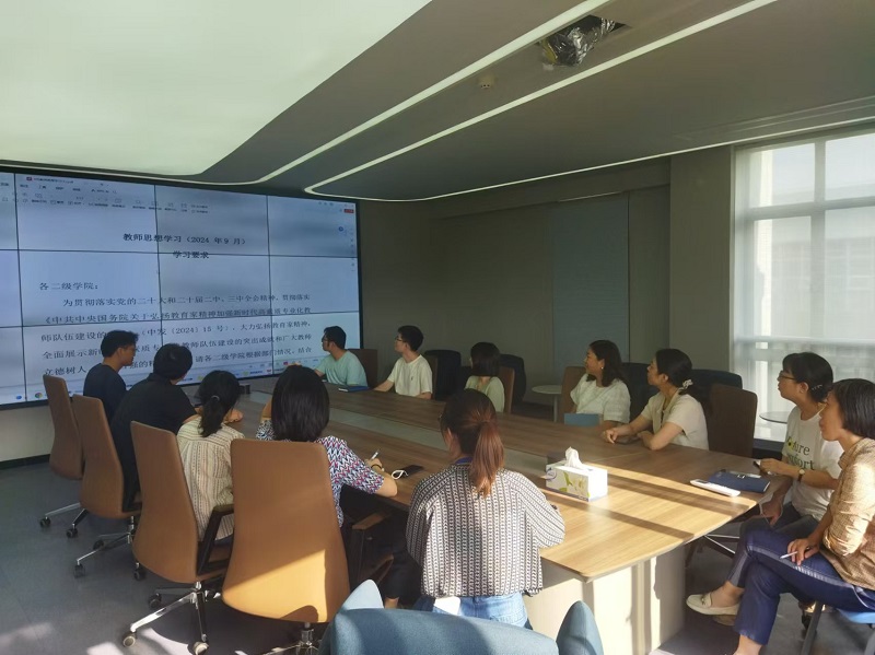 近日,我院各教研室组织专任教师开展思想学习,重点学习研讨习近平在全国教育大会上的重要讲话以及党的二十届三中全会精神等内容。