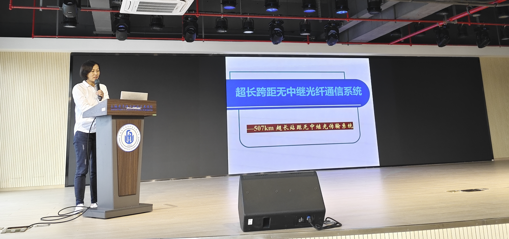11月4日,由我院举办的系列学术讲座第一讲在二食堂综合演艺厅举行。我院党总支副书记、副院长范晓燕和三位辅导,以及二百余名师生参与了本次学术讲座。讲座邀请学院高级工程师夏江珍博士做了题为《超长跨距无中继光纤通信系统》的学术报告,介绍了超长站距无中继光传输系统的科研进展与技术应用。