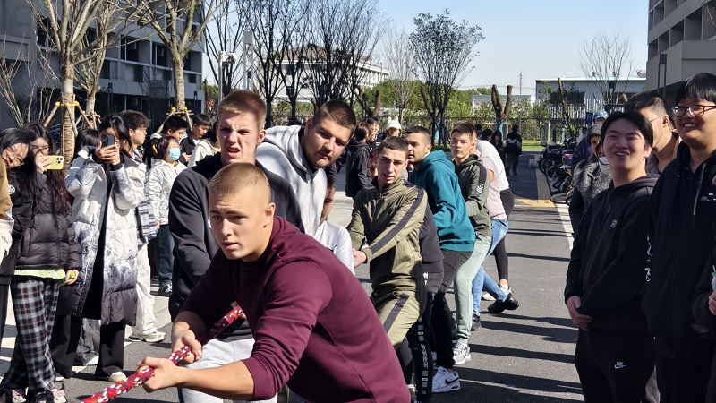 比赛还吸引了来自塞尔维亚的交流学生,他们也被这充满活力与激情的氛围所感染,欣然加入这场欢乐的赛事之中。比赛结束后,两国同学们相互交流、彼此熟悉,尽管语言和文化背景略有不同,但此刻大家都被拔河比赛这一共同的活动紧紧相连,共同书写了一段难忘的跨国校园体育交流篇章,本次活动也进一步促进了多元文化在校园中的交融与碰撞,为校园文化交流注入了新的活力与内涵。