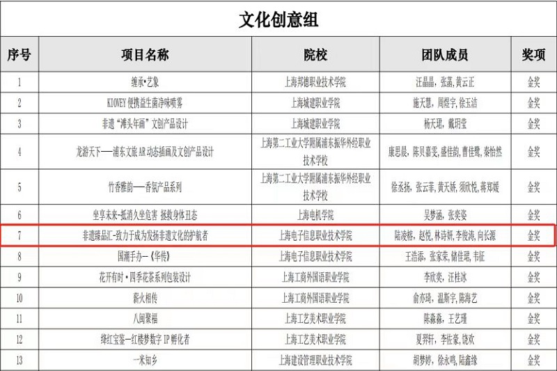 近日,第二届上海市职业院校学生创新创意大赛获奖名单公示,我院师生团队在本次比赛中表现出色,《镜动Max——AI健身姿态矫正领航者》和《非遗臻品汇——致力于成为发扬非遗文化的护航者》两个项目分别荣获科技创新组和文化创意组金奖,项目指导老师范晓燕、王乐乐荣获优秀指导教师奖!
