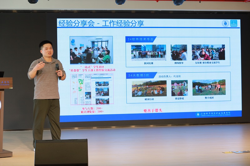 3月18日中午,学院在新食堂四楼综合演艺厅开展了第一期“学霸讲堂”,邀请2022级现代通信技术专业优秀学生代表周兴乐担任主讲。学院党总支副书记、副院长范晓燕、学管办主任张梅和200余名同学参与活动。