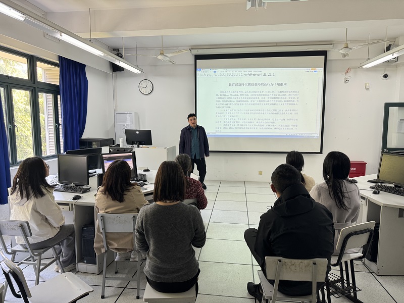 各教研室主任立足教育教学实际,逐条领学《新时代高校教师职业行为十项准则》,强调要以十项准则为行动标尺,将立德树人根本任务融入备课授课、科研创新、学生管理等各个环节‌争做学生锤炼品格、学习知识、奉献祖国的引路人‌。通过解读《关于高校教师师德失范行为处理的指导意见》,深入剖析学术不端、师生关系失范等典型案例引导教师以身边事警醒身边人,切实做到心有所畏、言有所戒、行有所止。同时,围绕《关于加强和改进新时代师德师风建设的意见》,重点解读完善师德考核评价体系要求,明确将师德表现作为职称评聘、岗位晋升、评优评先的一票否决指标,推动师德师风建设与日常教学、年度考核深度融合。