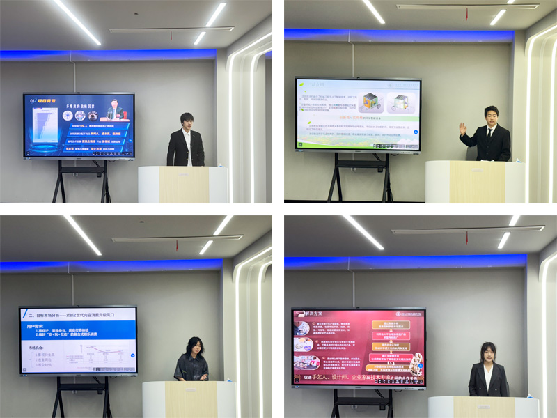 在激烈的比赛中,参赛选手聚焦“项目核心技术”和“市场价值与社会意义”两个关键点,通过PPT演示、实物展示、场景模拟等生动形式,详细地向评委和观众汇报了项目理念、技术细节、预期的市场价值和社会影响。