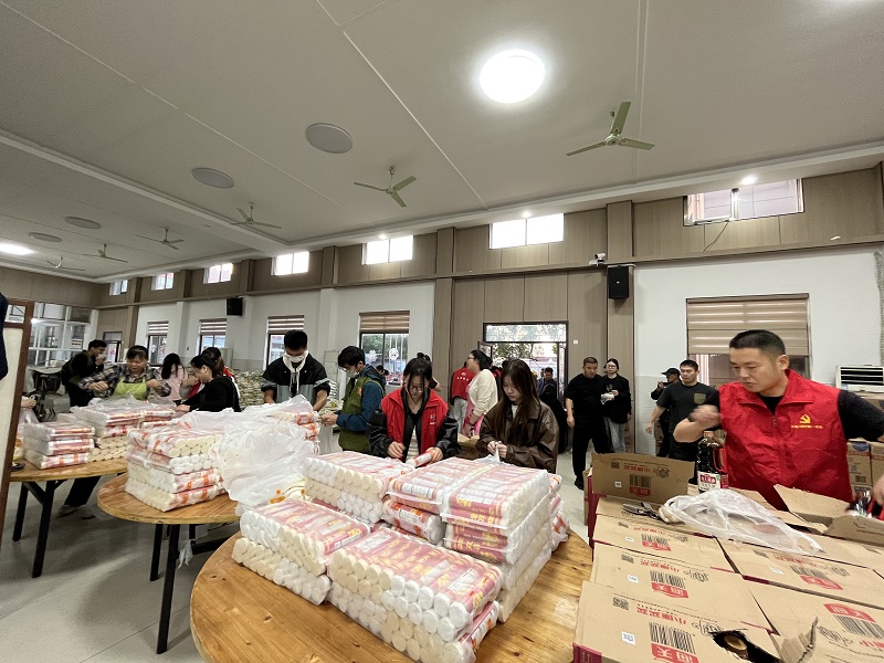 清晨五点多,天还未完全亮,集贤村村委会已是一片忙碌景象。十余名学生入党积极分子在学生党支部书记胡婷带领下,与村委会工作人员默契配合,流水作业,细心地将一份份饱含敬意的重阳节礼物进行分拣、装袋、整理。高效协作的氛围驱散了深秋清晨的寒意,只为能让老人们尽早收到这份节日的祝福。