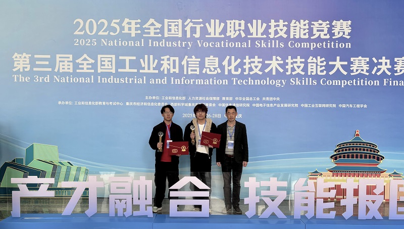 11月26日-11月28日,2025年全国行业职业技能竞赛——第三届全国工业和信息化技术技能大赛决赛在重庆科学会堂圆满落幕。我院蔡锦迪、陈智康两位学生组成的参赛队在董昌春老师指导下,经过三天的激烈角逐,斩获制造业数字化转型赛项(学生组)二等奖。